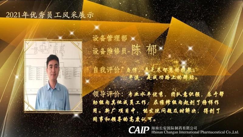 回望2021年,在長安制藥全體員工的共同努力下,公司各項工作得以順利推進,在我們當(dāng)中,有一些榜樣們,他們在工作中發(fā)光發(fā)熱、盡職盡責(zé),主動作為,充分發(fā)揮了模范帶頭作用,并被授予了“2021年度優(yōu)秀員工“的榮譽稱號。