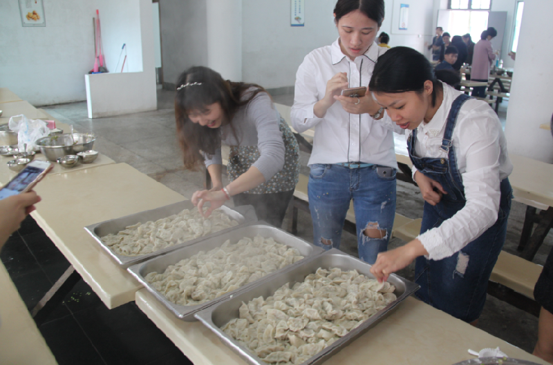 2016年12月21日上午10點(diǎn),行政部企業(yè)文化經(jīng)理宋佳宣布“熱騰騰的餃子,暖洋洋的心”活動(dòng)正式開始?;顒?dòng)一共分成4個(gè)大組,分別是,生產(chǎn)組、人力行政組;財(cái)務(wù)營銷結(jié)算中心及注冊組、質(zhì)量組。每個(gè)組的成員之間分工配合得都很有默契,有的和面、有的搓面球、有的剁拌餡、有的搟面皮……期間,各組成員之間相互切磋,相互交流。看!財(cái)務(wù)營銷結(jié)算中心及注冊組率先包好150個(gè)餃子,其他組也非常努力,并且陸陸續(xù)續(xù)包好餃子。 經(jīng)過大家的齊心協(xié)力,熱騰騰的餃子新鮮出爐了,每個(gè)組的成員看到自己包的餃子,臉上不由自主洋溢著興奮的笑容,看著盤子里奇形怪狀的餃子,大家迫不及待地嘗自己的的餃子,一邊吃著“熱騰騰的餃子”一邊分享,心里非常的暖洋洋。此時(shí),大家的歡聲笑語在食堂里回蕩著。